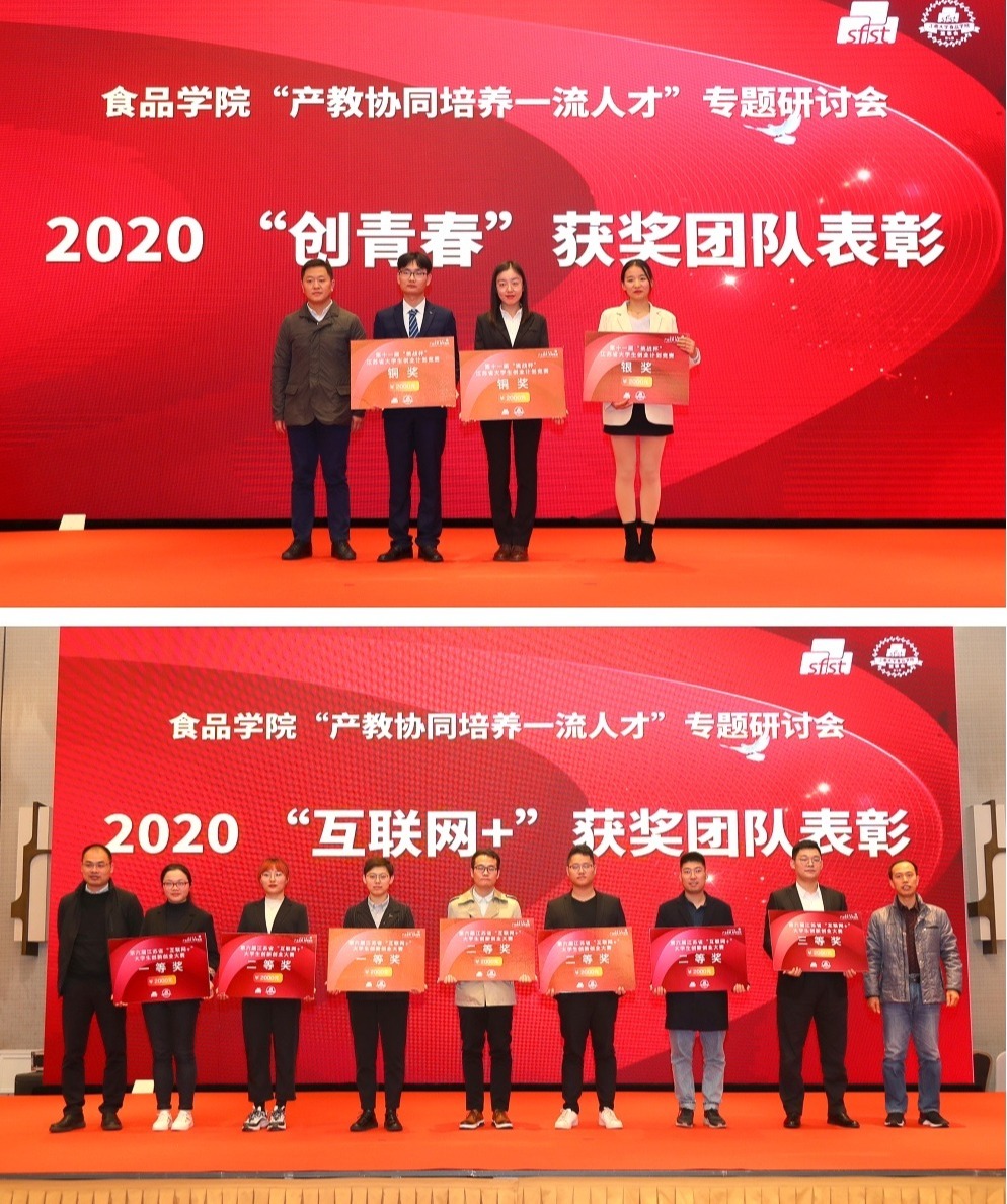 一直以来,食品学院注重加强产教协同,尤其注重引入企业资源助力学生培养。学院董事单位企业在学院设立社会奖助学金,协同学院开展学科竞赛,为学生成长搭建平台。论坛上,从学科竞赛中走出来的优秀创新创业成果进行了路演,“森帝科—无醛淀粉基木材胶引领者”、“美益佳—‘纸’为乳品安全”、“叫楂楂甜辣鲜菇酱”、“Spring Budding‘童桦’桦树汁发酵乳饮料”等项目获得企业一致好评。