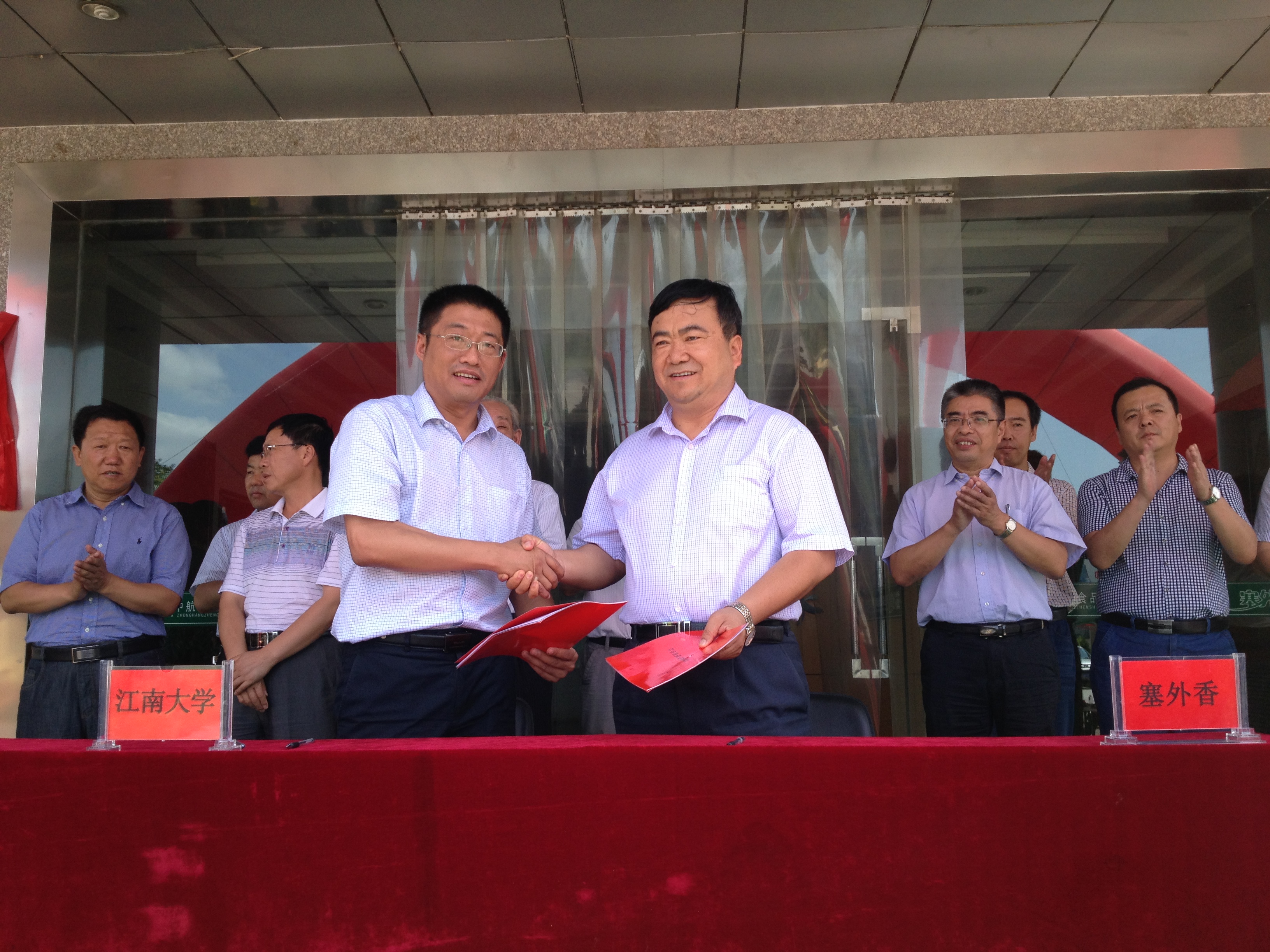 7月19日上午,bat365在线官方网站-宁夏中航郑飞塞外香清真食品有限公司战略合作签订仪式在宁夏青铜峡市举行。食品学院院长陈卫教授、食品学院姚惠源教授、张灏教授、周惠明教授、马晓军副教授、钱海峰副教授、王立副教授、朱科学副教授、食品学院办公室主任李敏媛、青铜峡市人大常委会副主任袁浩、青铜峡市嘉宝轻纺工业园区管委会主任王玉成、中航工业郑飞集团粮业公司黄笋林副总经理、宁夏中航郑飞塞外香清真食品有限公司胡学文...