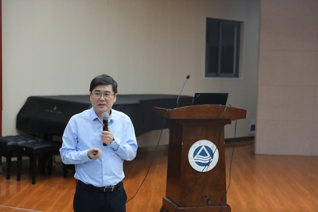 教师代表翟齐啸教授为全体新同学献上寄语。他以“学长”和“老师”的双重身份,告诫同学们要坚持学习、主动涉猎、不断创新,勇于面向当下、面向世界,做一个身心健康、人格健全的新时代“后浪”。