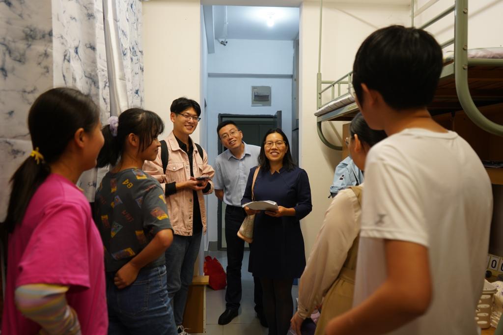 学院党委书记傅莉莉、副书记魏珍吉、副院长王立等第一时间前往宿舍园区看望新生。因为疫情缘故,新生都是独自入校报到,学院领导们特别关心他们的适应情况、报到是否顺利完成等,仔细查看了基础设施和环境卫生,深入寝室与新生展开亲切的交流。