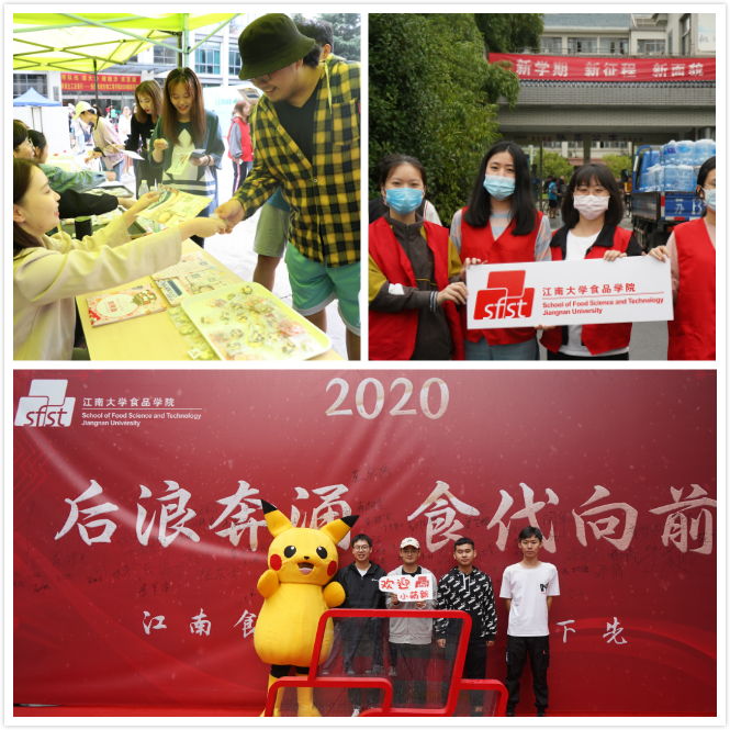 本次迎新工作严格遵守疫情防控要求,制定了周密的方案,以便新生可以分流、精准、有序报到;在报到现场,志愿者队伍全程佩戴口罩,为新生答疑并引导新生跟进迎新流程;学院五大俱乐部设点,支起帐篷,向前来报到的新生派送亲手制作的饼干、牛奶小方等食品。新生们佩戴班级徽章,在签名墙前签名、合影留念,记录下他们与食品学院的第一次相遇。