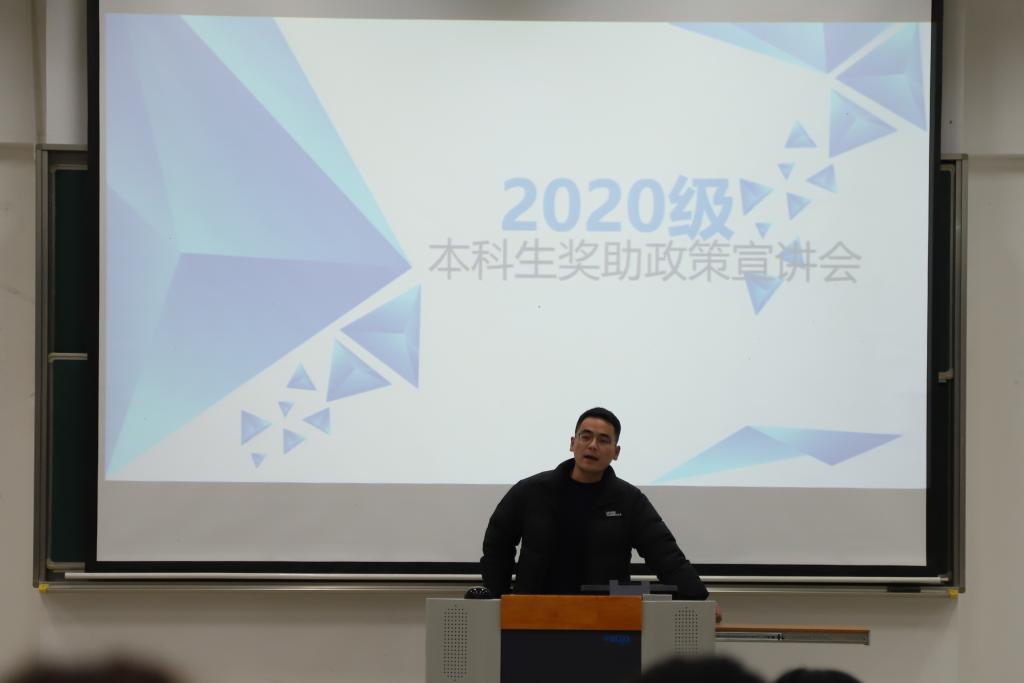 杨光宝老师首先介绍了学校的助学体系,他讲解了学校助学金的种类以及申请方式,勉励大家实事求是地申请助学金,使助学金真正达到“助困”的目的。随后,他通过播放视频短片的方式,介绍了学院的社会奖助学金体系,提醒大家申请奖助学金的要求及注意事项,号召同学们努力学习,积极争取机会。