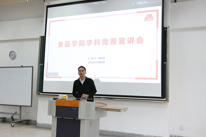 10月9日,食品学院2022级本科生科创启蒙大会于第二教学楼A127教室顺利举办。学院辅导员杨光宝、张任,科技创新协会学生负责人何旷,学科竞赛获奖学生代表与2022级全体本科生参加活动。