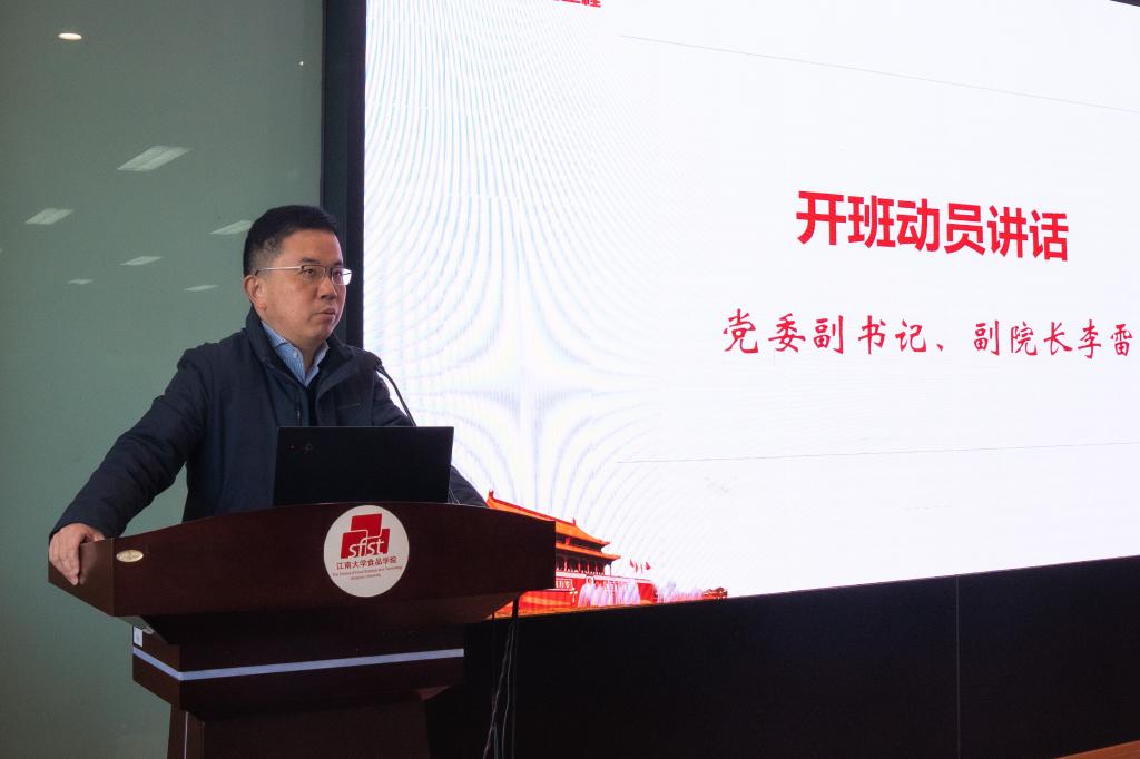 开班仪式在庄严的国歌声中拉开帷幕。李雷首先致辞。他对参训学员表示由衷祝贺,并指出本次活动主题在于“青年”,食品学院党委深切关心青年成长,高度关注青年发展。他从支教报国、竞赛赋能、扎根基层等方面列举了食品学子中的典型青年,以新时代食品青年砥砺奋进、敢为人先的精神风貌和心有大我、立志报国的人生选择激励同学们厚植爱国情怀、坚定理想信念、加强专业学习、提升综合素质。他鼓励学员们在大学时代努力提升个人的社会化能力,自觉融入党和人民团结奋斗的历史洪流,争当伟大理想的追梦人、争做伟大事业的生力军。