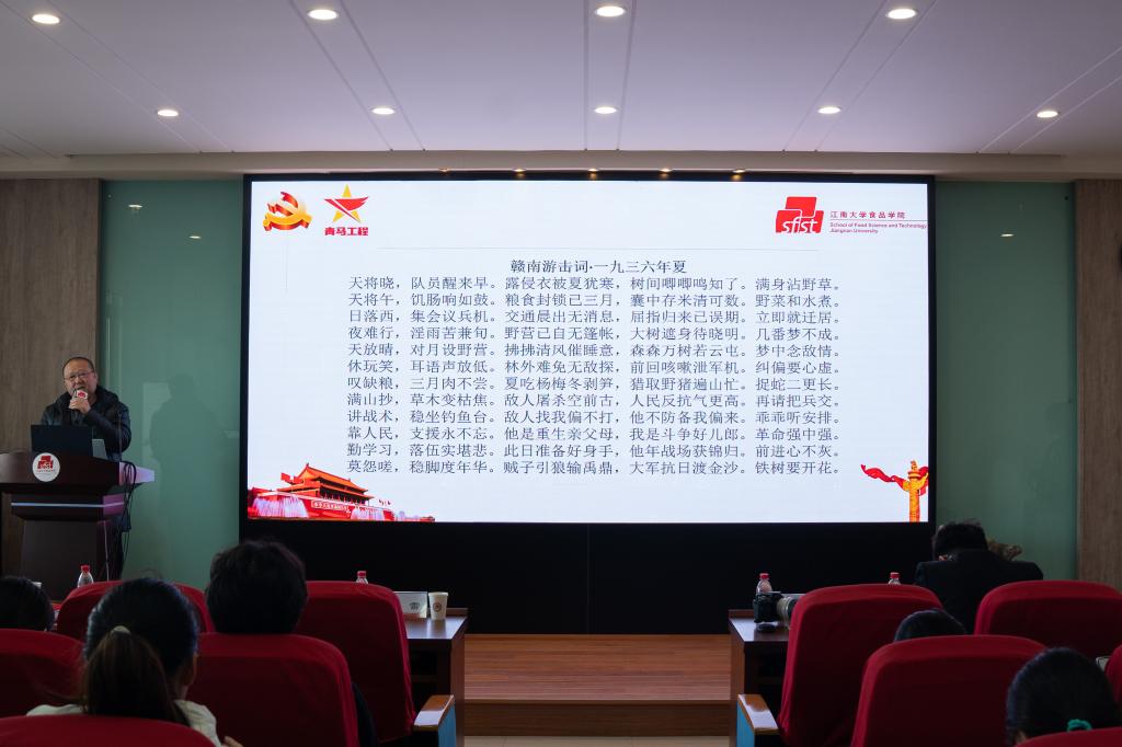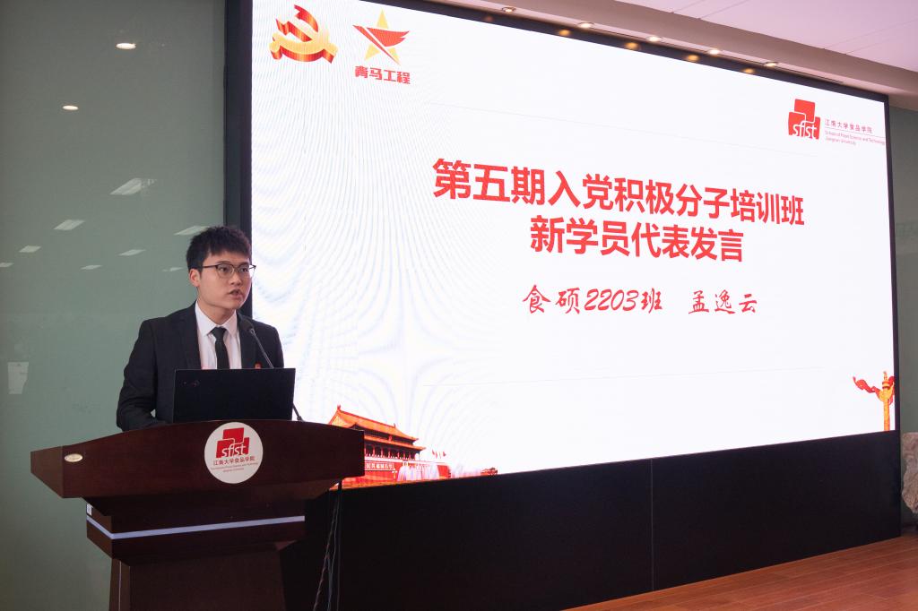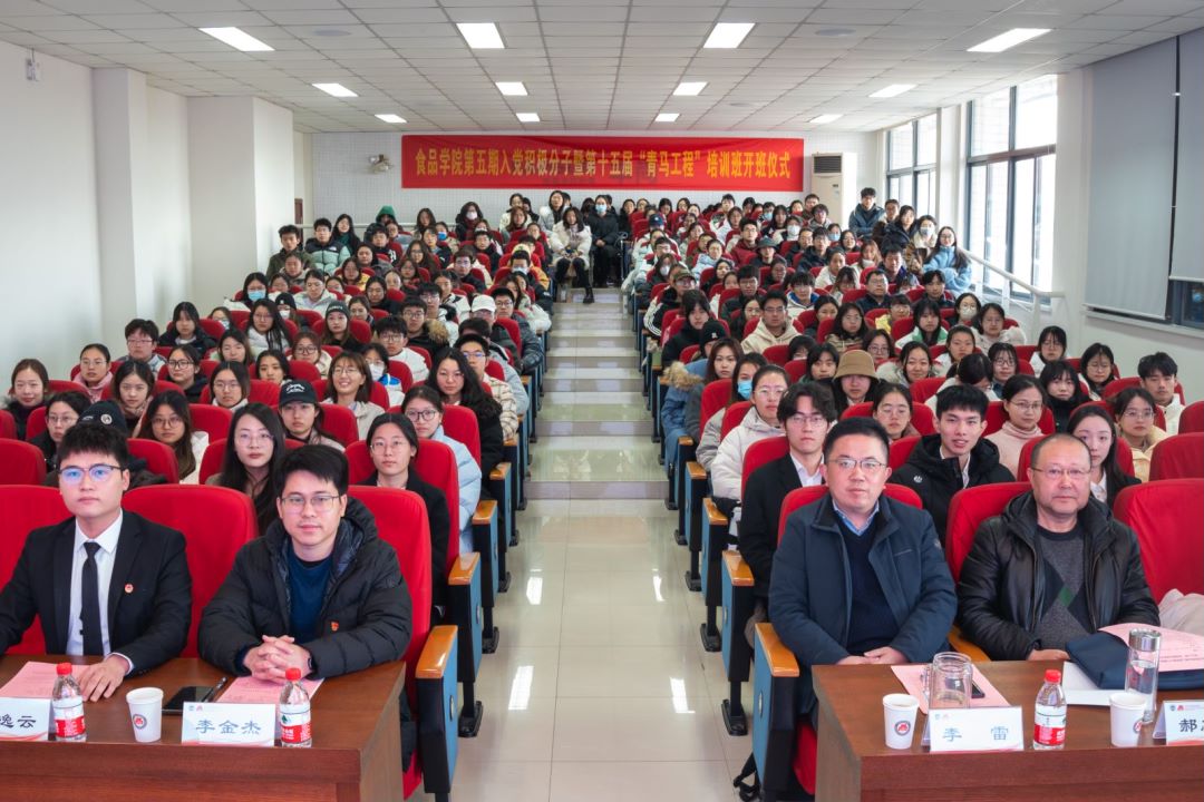 为加强对入党积极分子和“青马工程”学员的培养和教育,端正入党动机,坚定入党信念,提高政治理论水平,12月17日上午,食品学院第五期入党积极分子暨第十五届“青马工程”培训班开班仪式在食品楼D912报告厅举行。食品学院党委副书记、副院长李雷,无锡市新四军历史研究会副会长、食品学院关工委委员郝志刚,食品学院学工办主任兼分团委书记李金杰以及168名学员参加培训。开班仪式由食品学院党建辅导员刘璇主持。