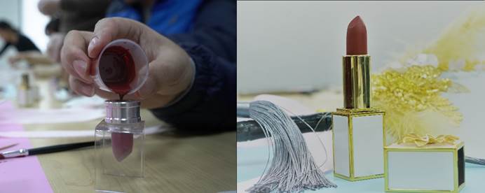 食品学院分工会特地邀请口红制作工作室的老师前来教学。活动伊始,老师首先进行了知识分享,鼓励大家要用最好的妆容细心装扮自己;分享结束后,老师按照材料混合-倒入模具-安装完成-制作包装的步骤进行教学,随后参加活动的老师们开始按照步骤制作属于自己的口红。