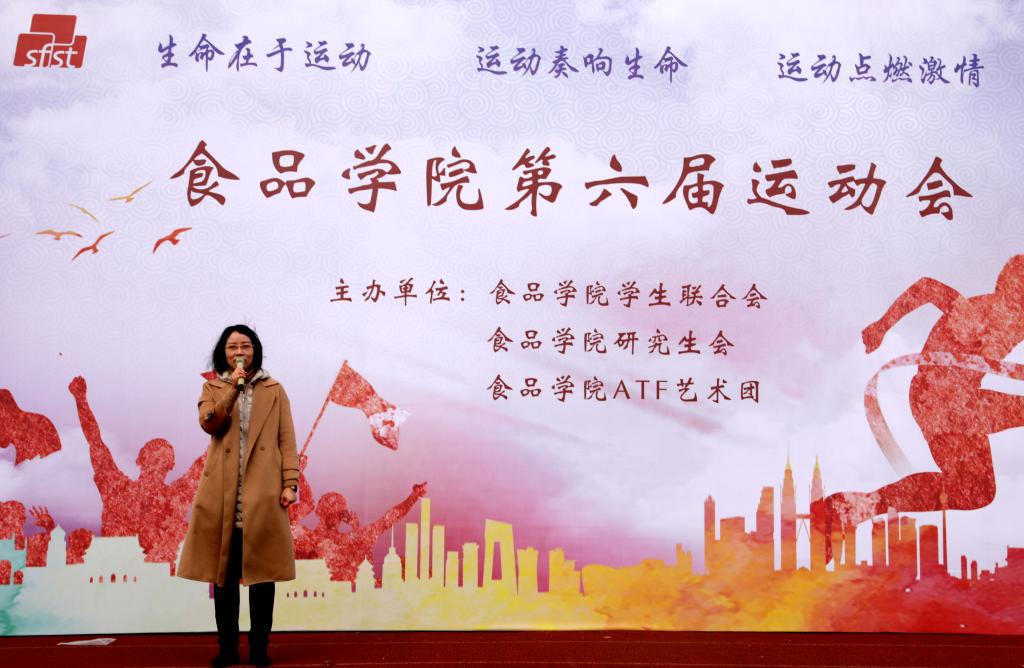 随后,在场领导老师为2020年度体育先进个人和集体颁奖。最后,傅莉莉宣布食品学院第六届运动会正式开幕。
