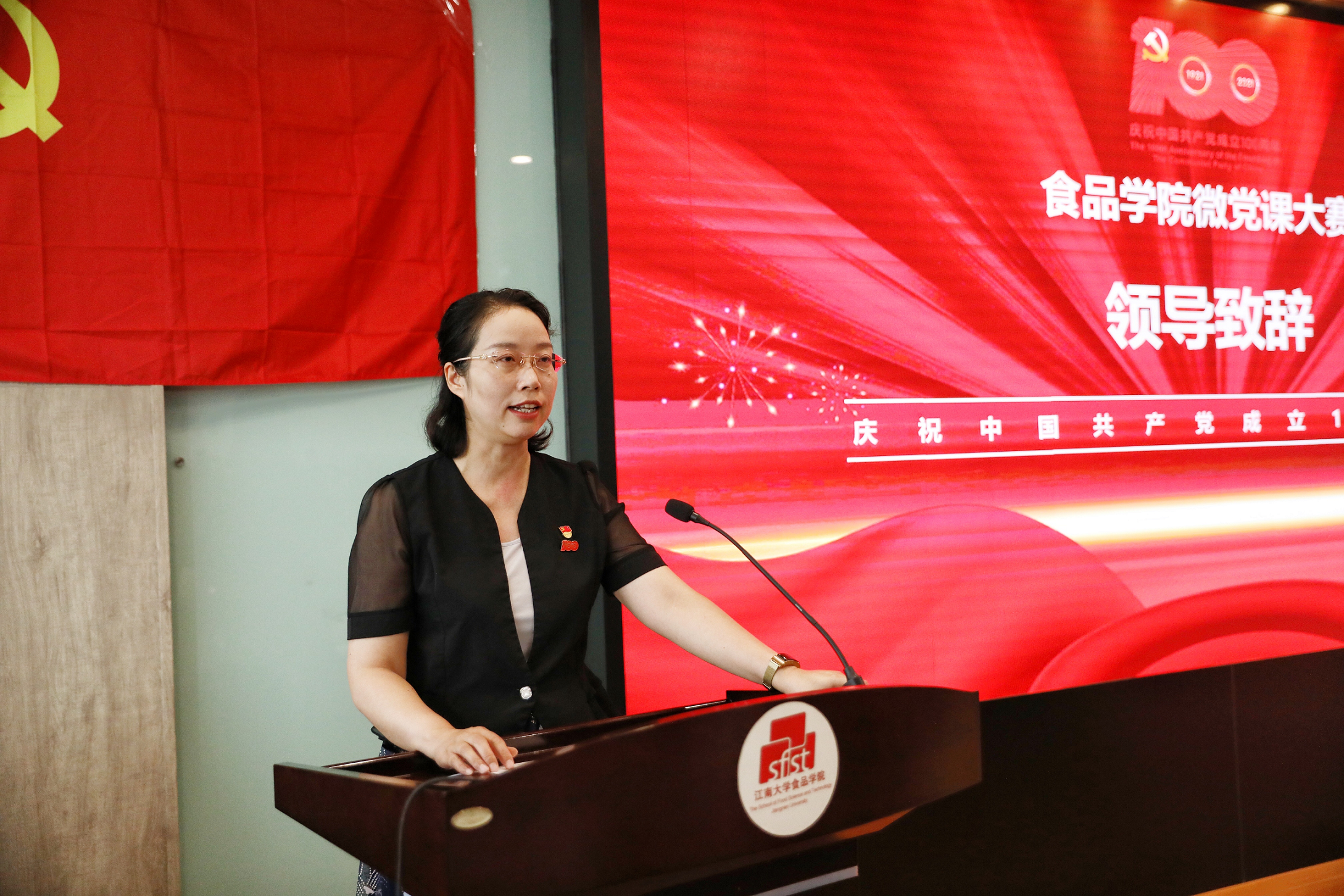 学院党委书记傅莉莉在致辞中表示,在全党全国上下喜迎建党100周年的历史时刻,食品学院组织学生党支部开展微党课大赛,是深入推进党史学习教育的重要举措,也是庆祝建党100周年的具体行动。她希望党员同志们能够将微党课所呈现出的精神内涵,与学习生活紧密联系起来,真正做到学有所思、学有所悟、学有所行,在学院中营造使命在肩、奋斗有我的良好氛围。