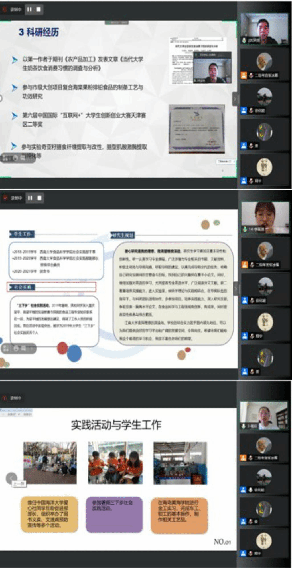 为促进全国高校食品相关专业优秀大学生之间的交流,7月14日-15日,2021年“百年接力 食代有我”全国优秀大学生暑期夏令营在bat365在线官方网站成功举行。本次夏令营吸引了来自国内70余所知名高校的220余名优秀大学生。今年的夏令营通过线上方式举办,在两天时间里,食品学院精心组织了专家讲座、学术报告、师生交流和综合素质考核等环节,营员踊跃参与,反响热烈。