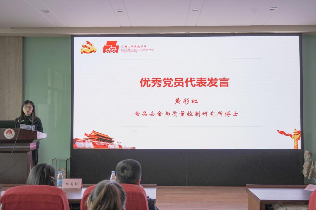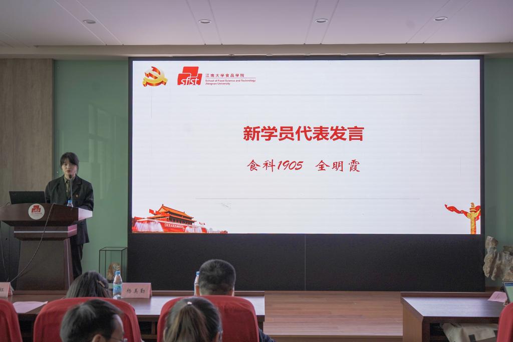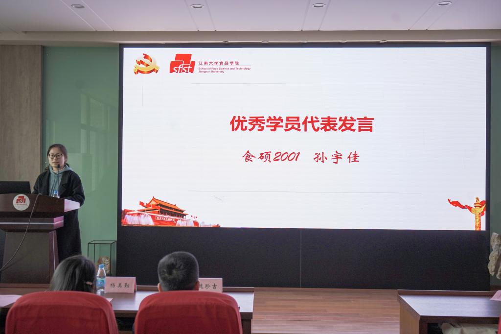 食品安全与质量控制研究所博士生黄彩虹作为优秀党员代表发言,她分享了作为一名共产党员的初心和感悟,她表示,全体学员应在学习中坚定理想信念,强化服务意识,自觉接受党组织的培养、教育和考察,真正做到在思想上入党再到组织上入党。优秀学员代表孙宇佳分享了参加入党积极分子培训班的学习经历,她号召全体学员时刻保持思想的先进性、自觉开展批评和自我批评。2019级本科生全明霞代表全体学员郑重承诺,将珍惜此次学习机会,以最饱满的热情、最全面的投入、最实际的行动完成党课学习,遵守培训纪律,以党员的标准严格要求自己,不断提高自己,争取早日加入党组织。