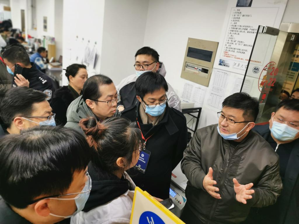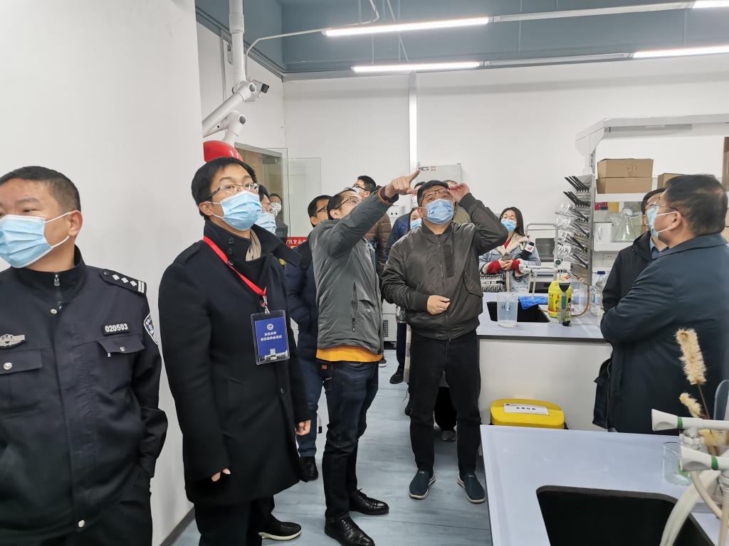 2022年1月13日无锡市校安委领导范良、潘鹰同志带队,协同市教育局、市公安局、市生态环境局、市应急局、市消防单位相关职能处室负责同志及专家联合对江南大学校园安全与实验室安全进行了检查。上午10点,检查组赴食品学院对部分科研实验室进行检查,江南大学副校长堵国成、实验室与设备管理处处长刘仁、副延长赵爱军、保卫处副处长吴江、食品生工楼楼长王国平、食品学院副院长程力、实验室主任王文龙陪同检查,并对专家组的问询进行了回答。