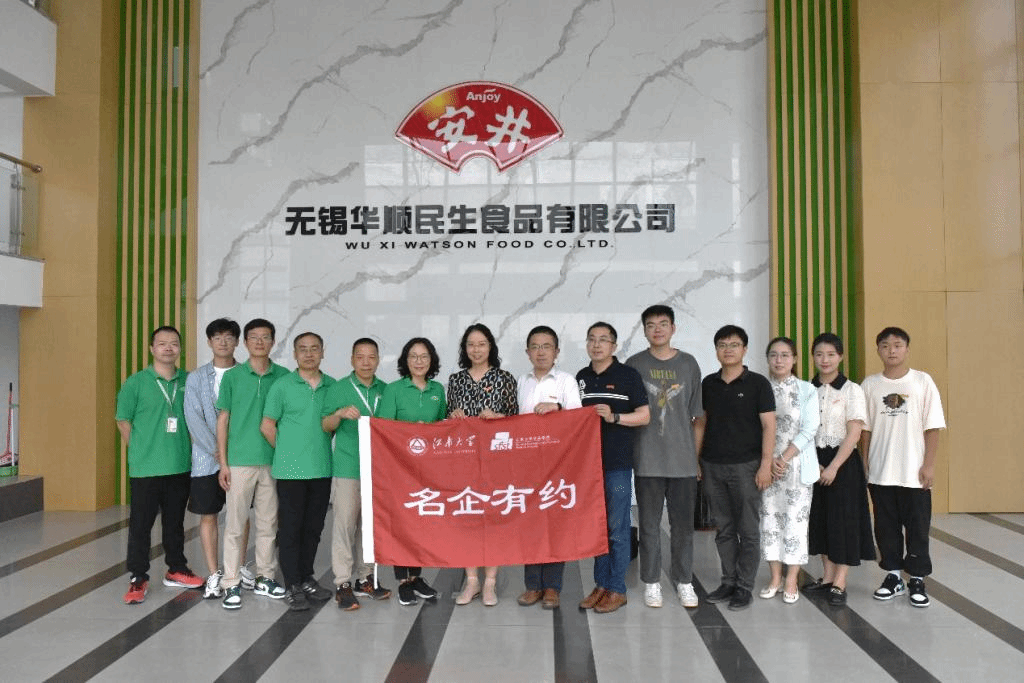 在活动首站无锡华顺民生食品有限公司(无锡安井),师生访问团在总经理庞珂、技术总监连惠章等的陪同下参观企业并予座谈。庞珂详细介绍了安井集团的主业布局、特色优势、发展规划等。程力就学科建设、教育教学、科学研究、国际合作、文化发展等方面予以介绍。校企双方围绕就业政策及需求、产学研合作等话题共同探讨,希望搭建更加完善的就业支持系统,为经济发展和区域创新输送更多的优秀人才。