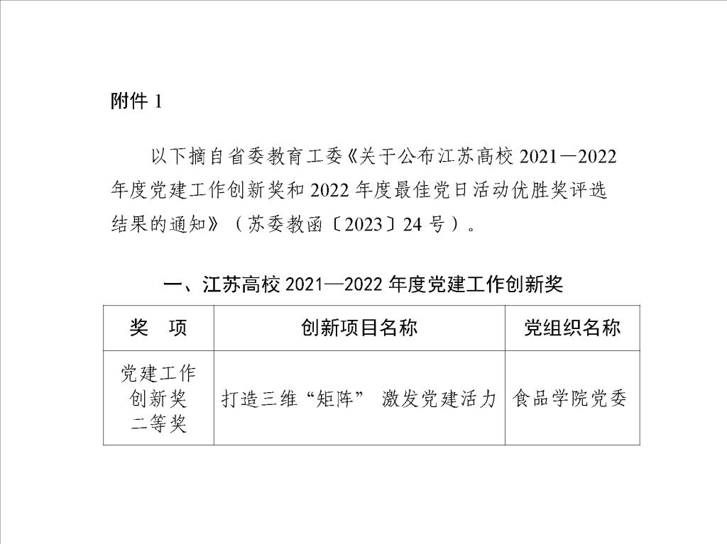 食品学院在2021-2022年度党建工作创新奖、2022年度最佳党日活动评中斩获佳绩