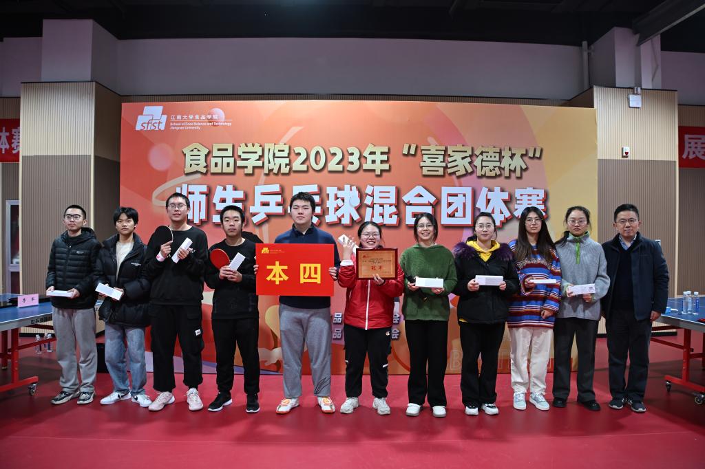 12月17日,bat365在线官方网站2023年“喜家德杯”师生乒乓球混合团体赛在学校体育新馆火热开赛。食品学院党委副书记李雷、副院长程力,体育部副主任赵来安,学院人事秘书邓理、分团委书记李金杰及120余名师生参与本次活动,共享国球魅力。