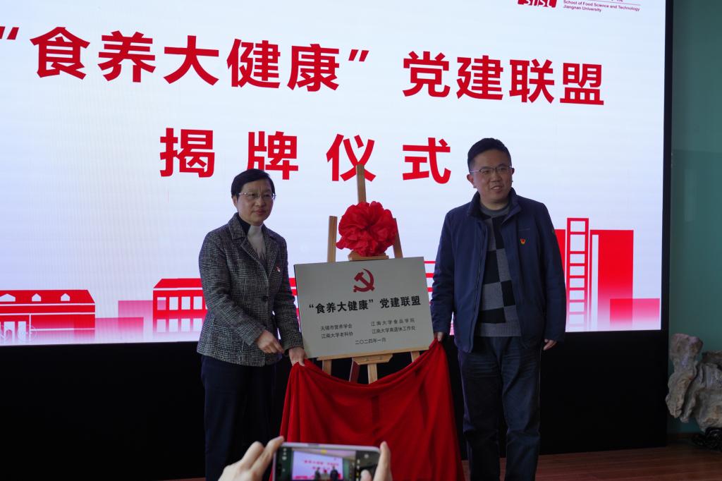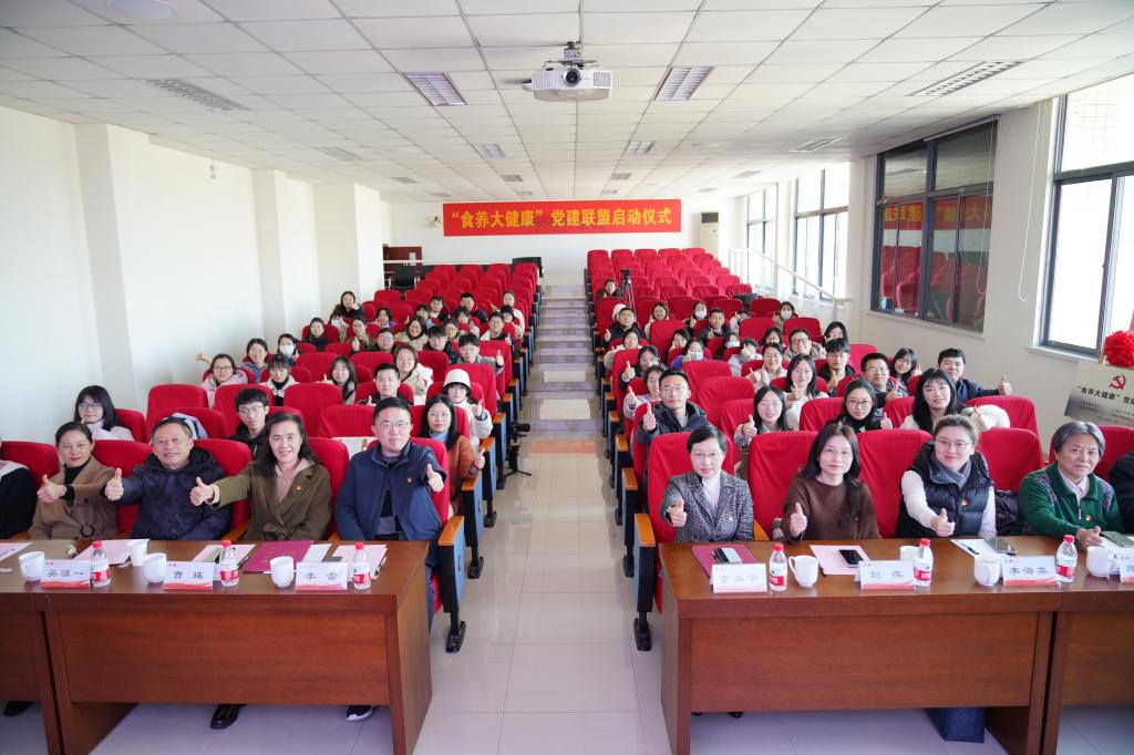 为深入学习贯彻习近平新时代中国特色社会主义思想和党的二十大精神,以一流学科力量推动落实“健康中国2030规划纲要”,探索党建统领下的食品营养与健康领域科普工作新思路,1月12日下午,由bat365在线官方网站牵头,联合无锡市营养学会、江南大学老科协、离退休工作处等校内外单位共同组建的“食养大健康党建联盟”启动仪式在食品学院D912报告厅成功举办。