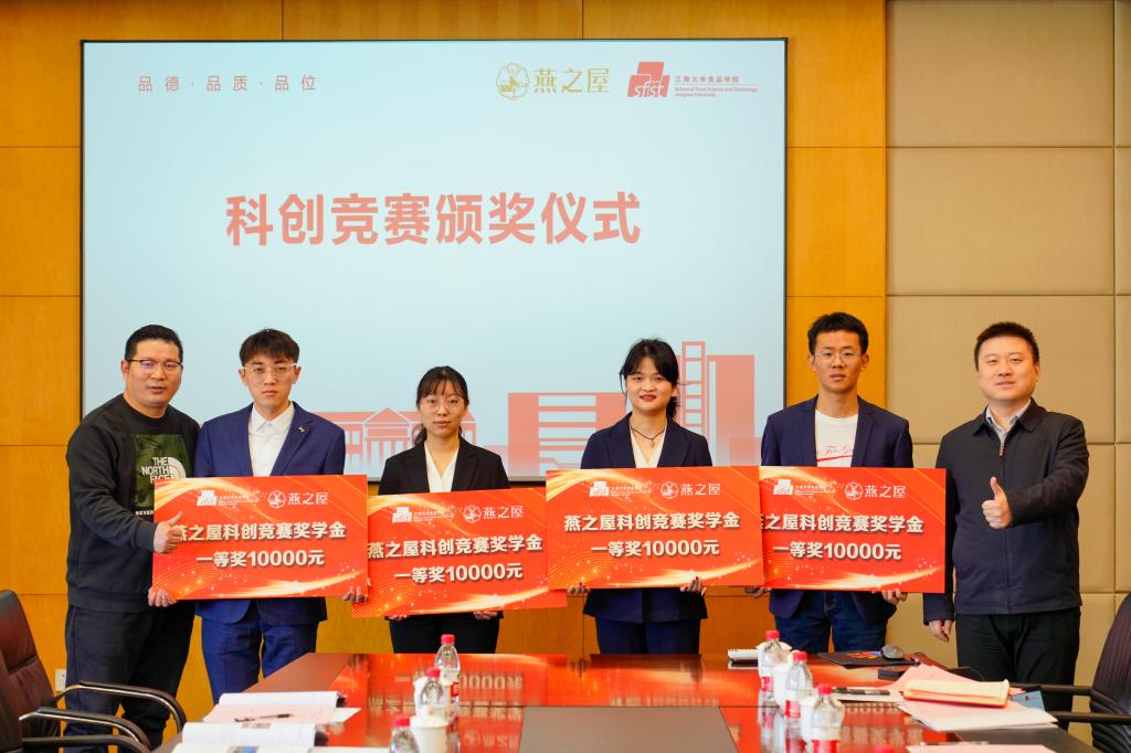 食品学院2023级硕士研究生、桉禾生项目负责人、中国国际大学生创新大赛金奖得主全明霞代表获奖学生发言。她表示,科创竞赛是求学生涯中重要的激励与鞭策,其中每一环都离不开领导、老师、队友们的关心和支持,也离不开燕之屋的付出和鼎助。接下来,她会把科创的热情投入学业当中,为深度参与科研攻关、保障食品安全与生态环境奉献青春力量。