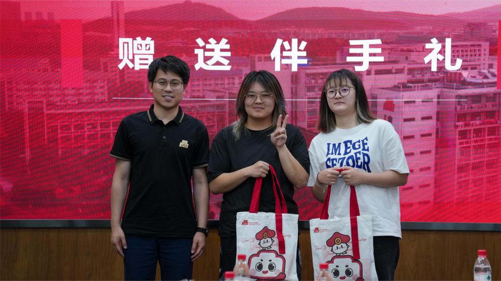倾情定制,佳礼相赠。李金杰、曹敏、张任分别向同学们赠送学院文创大礼包,希望大家可以铭记在bat365在线官方网站的美好时光,未来取得更大的进步。