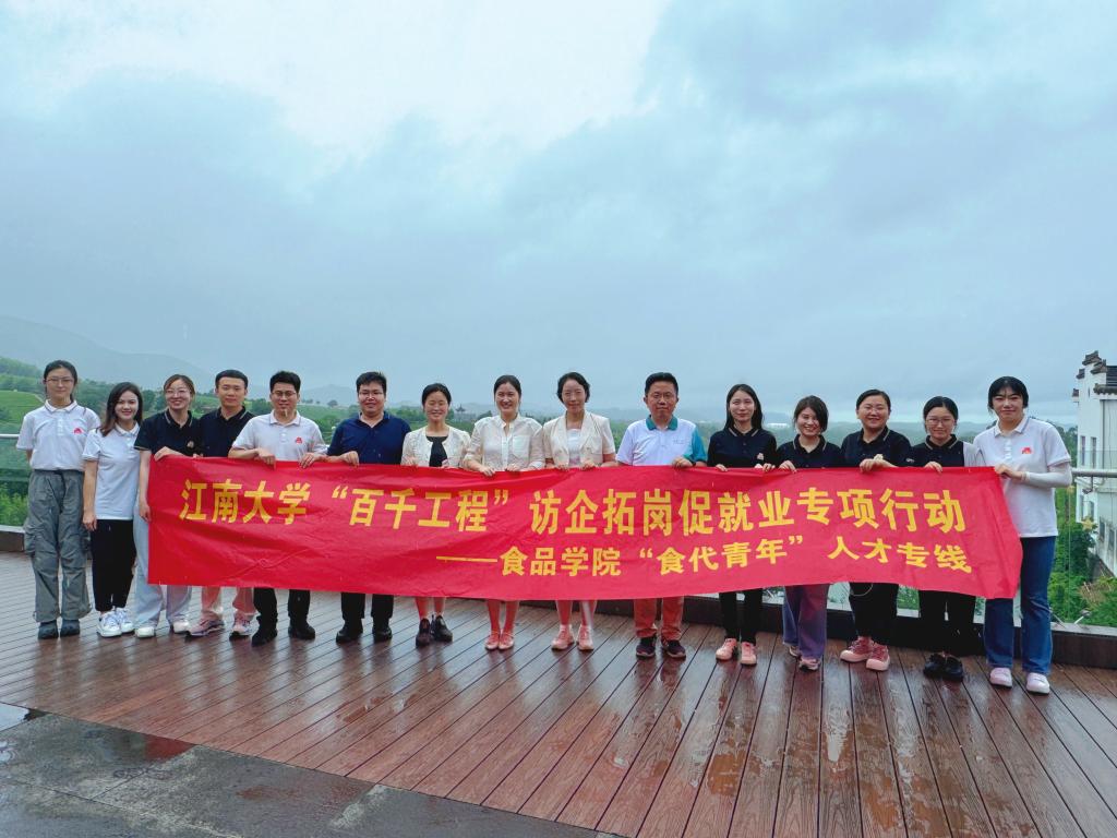 为进一步深化产教融合,切实推进院企协同育人和高质量充分就业,7月2日,食品学院党委书记傅莉莉,党委副书记兼副院长李雷,副院长(挂职)商飞飞率领全体辅导员前往宜兴开展江南大学“百千工程”访企拓岗促就业专项行动——“食代青年”人才专线活动。