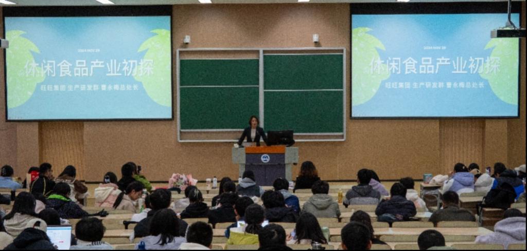 11月29日晚,《食品产业导论》迎来第三次课程——“休闲食品产业初探”。这次,我们邀请到休闲食品领域著名代表性企业——旺旺集团的生产研发群群总、食品学院优秀校友曹永梅女士作为主讲嘉宾。