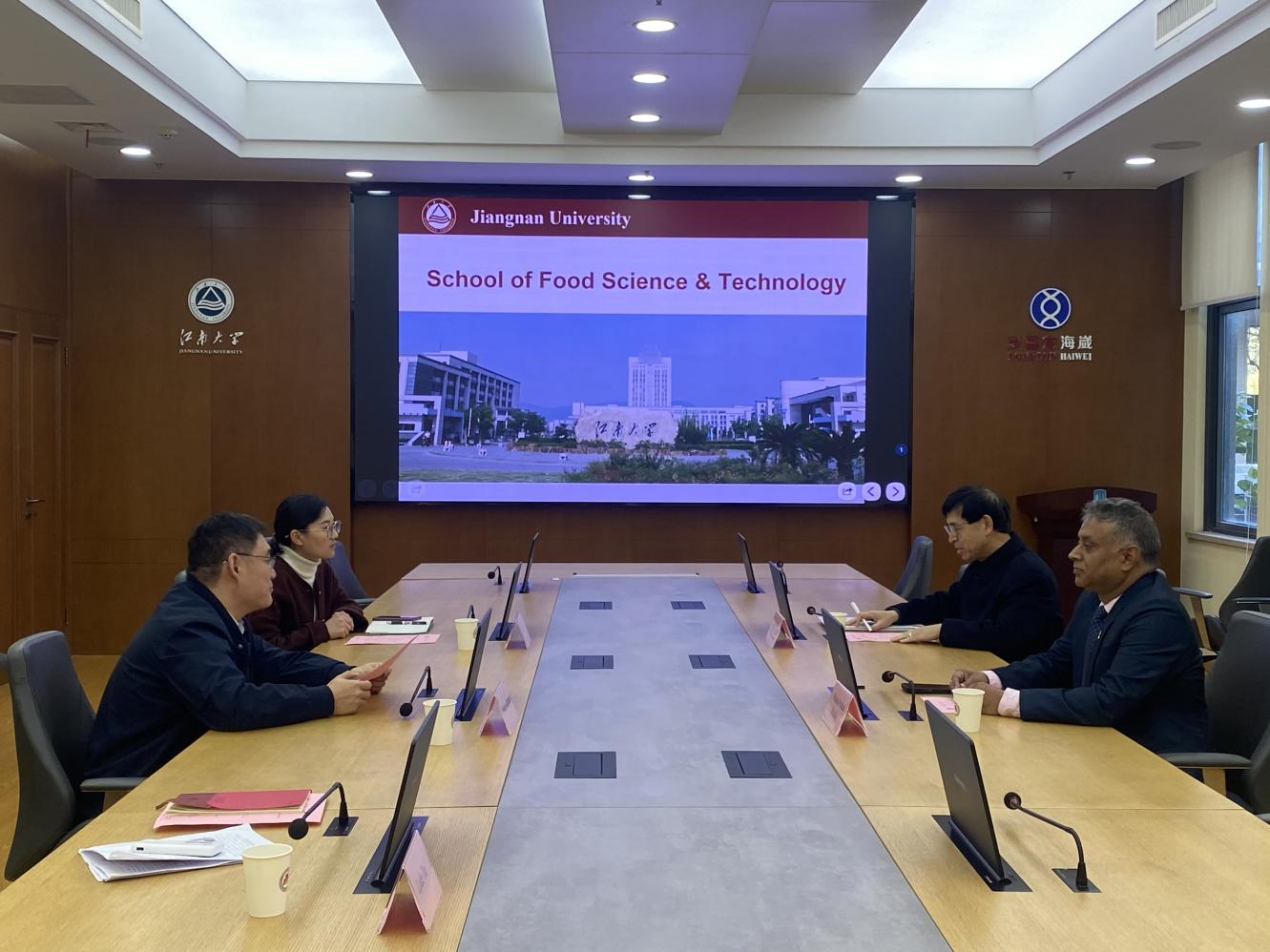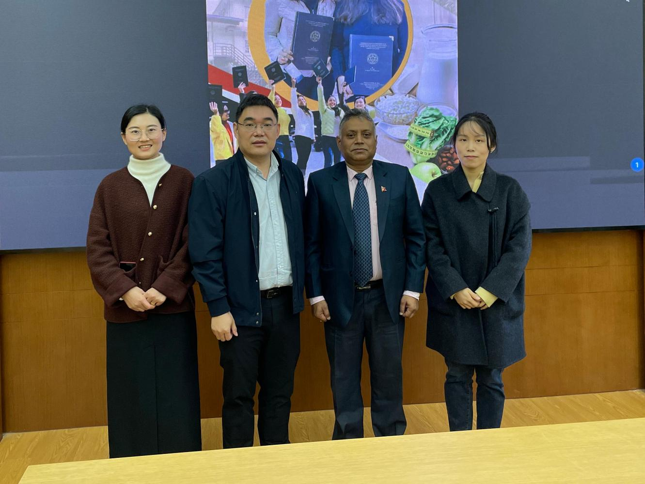 11月26日,尼泊尔CAFODAT College校长Bhakta PralhadPandey等一行2人到访江南大学。bat365在线官方网站食品学院副院长赵伟、副研究员张丽娜、国际交流秘书邰路德等参与座谈。