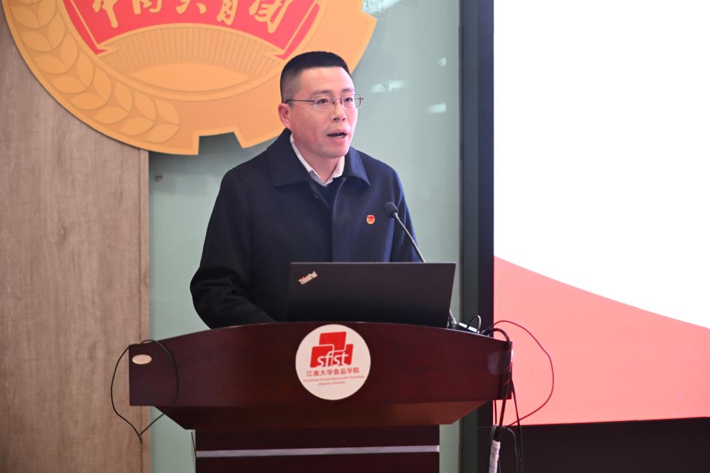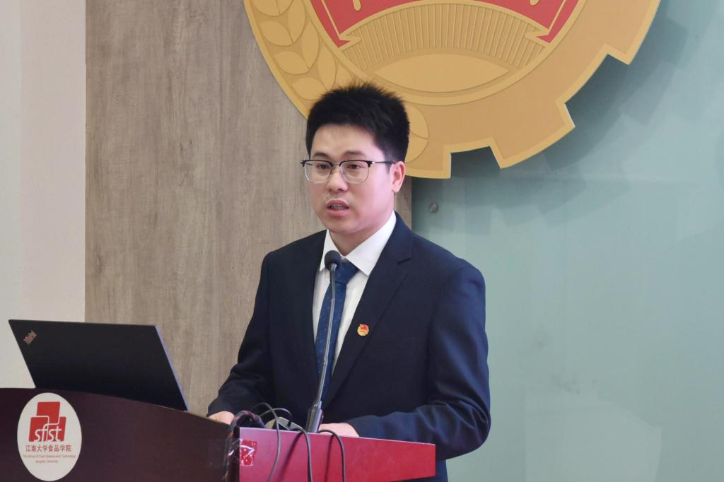 魏珍吉代表学校团委对大会召开表示热烈祝贺。他充分肯定食品学院团学工作在思想引领、组织建设、学生竞赛、社会实践、志愿服务、文体活动等方面的育人成效,并强调,学院共青团须准确把握青年工作的规律和特点,回答好新时代青年培养这一课题,团结带领全院青年不忘初心、与党同行、向下扎根、向上生长,做改革大潮中奋楫前行的江南人。