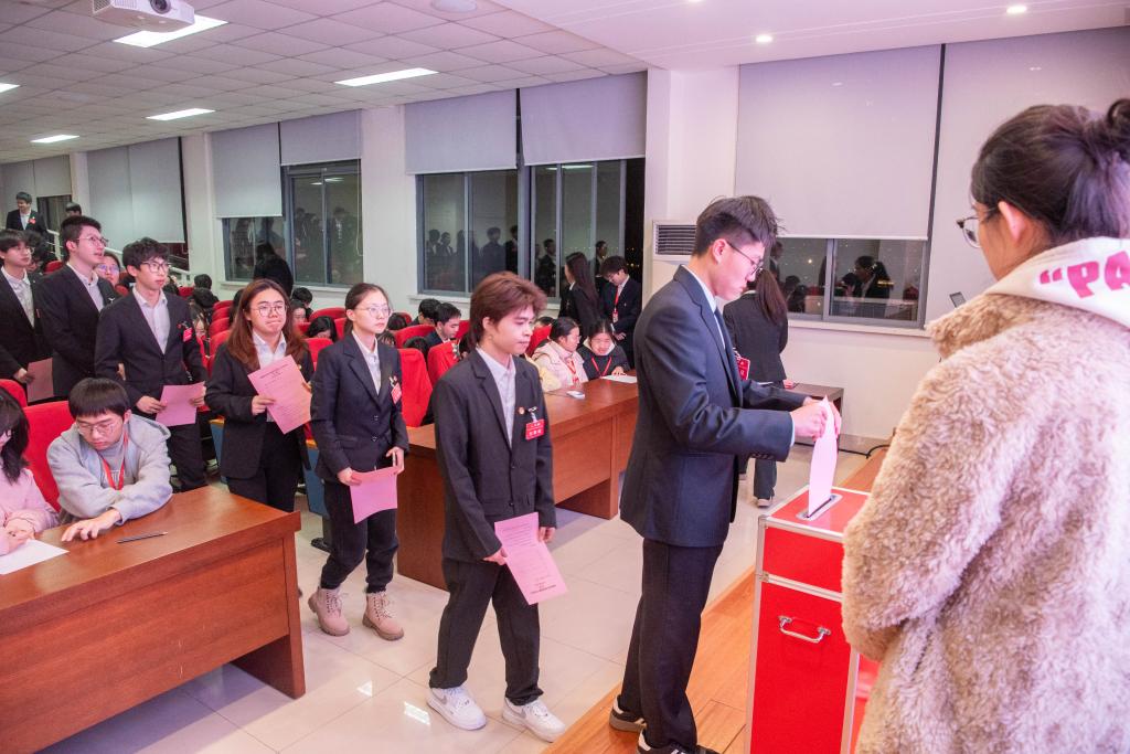 开幕式后召开全体会议。李金杰向大会作《共青团bat365在线官方网站第九届委员会工作报告》,回顾总结三年来学院共青团工作的成绩与不足,规划下一阶段的奋斗目标和主要任务,决心继续紧密围绕学校、学院党政中心工作,引领团员和青年凝心聚力,开拓创新。