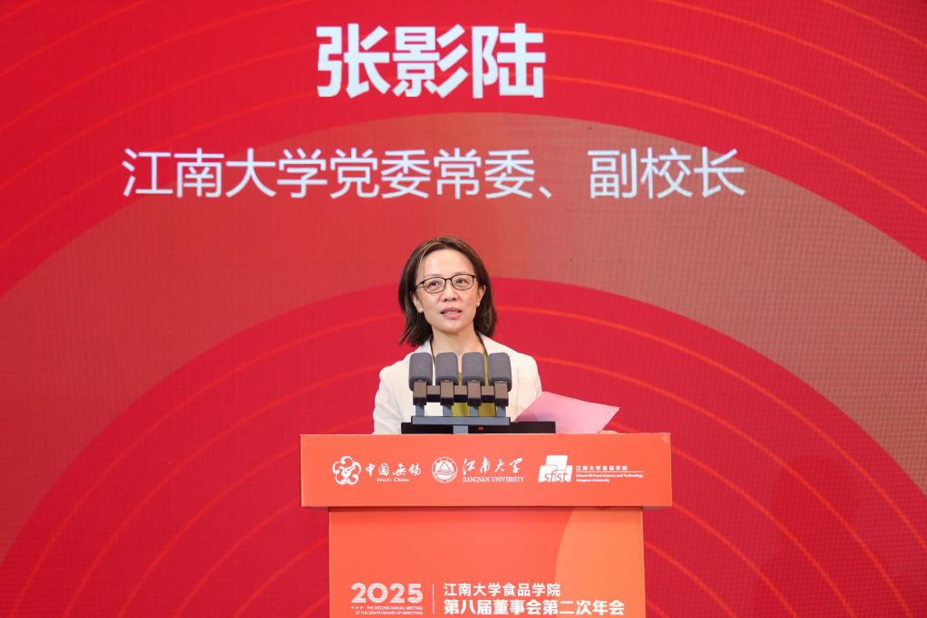 张影陆在开场致辞中代表全校师生对参会嘉宾表示热烈欢迎。她强调,江南大学在与行业企业的广泛合作中汇聚社会力量办学、深化产教融合,成效显著。她殷切希望各董事单位继续发挥好“战略智库”“资源枢纽”“桥梁纽带”三大关键作用,推动校企合作迈向更广领域、更深层次、更高水平,实现互利共赢。