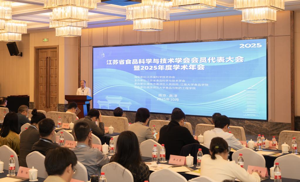 10月18日,江苏省食品科学与技术学会会员代表大会暨2025年度学术年会在南京高淳金陵大酒店举行。本次大会以“食科创新筑根基,健康江苏启新程”为主题,汇聚中国工程院院士、江南大学陈坚教授,中国工程院院士、南京师范大学副校长黄和教授,江苏省科协党组成员、副主席冯少东,江南大学党委常委、副校长李兆丰教授,江苏省食品科学与技术学会理事长、bat365在线官方网站顾正彪教授,上海交通大学农业与生物学院院长艾连中教授,国家粮食和物资储备局科学研究院谭斌研究员,南京市科协党组书记、主席朱军,江苏省科协学会学术部部长岳智顺,高淳区领导李蓓、孔和云、孔令杰等全省食品领域高校科研人员、企业代表、学会理事近200名会员代表参会。