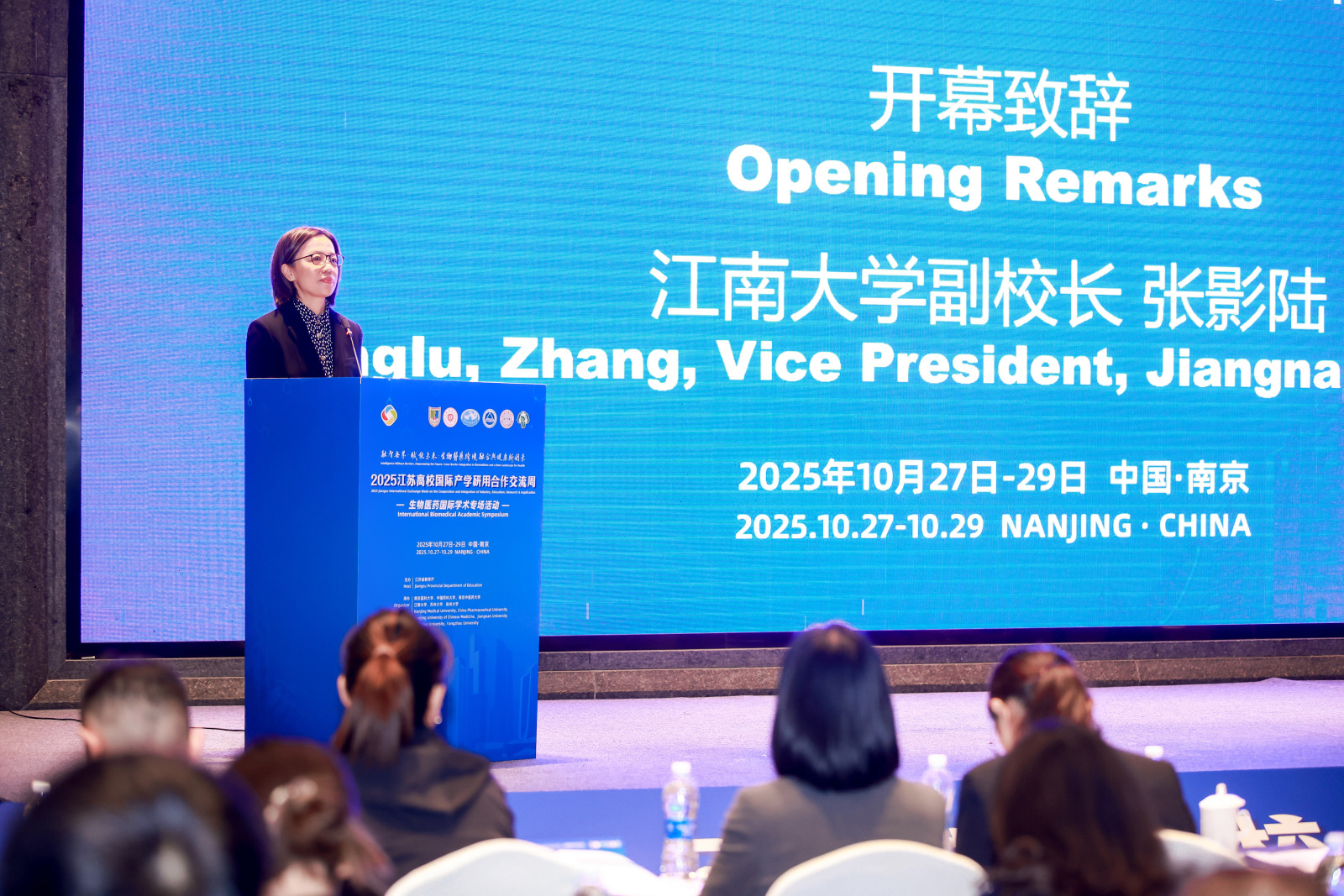 本次交流周共设置9场产学研合作专场活动,食品学院重点参与了生物医药国际学术专场活动。10月28日上午,张影陆出席在南京举办的该专场活动开幕式并致辞。