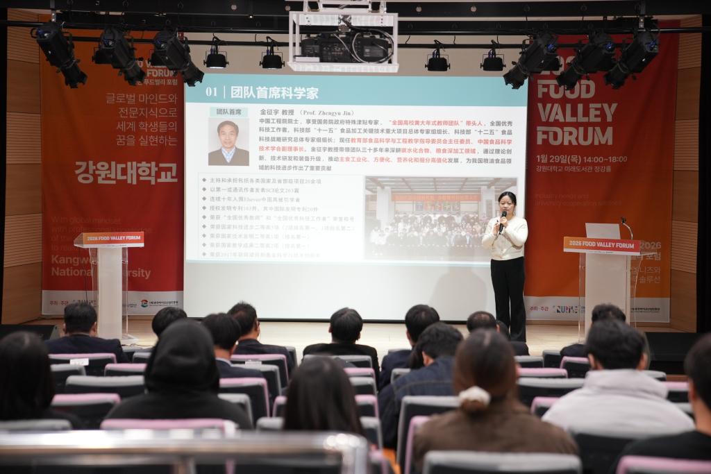 1月29日下午,代表团出席了“食品科技论坛”。在开幕环节,春川市市长在致辞中回顾了去年10月访问无锡的经历,对中国的发展成就表示高度赞赏。他指出,食品科技是春川市的四大支柱产业之一,市政府将大力支持江南大学与江原国立大学之间的合作,积极推动双方在知识共享与产业联动方面的深度交流。无锡市与春川市已于2025年10月正式缔结为友好交流城市,为两校合作提供了坚实的区域协作基础。江原国立大学校长也共同表达了对代表团此次访问的欢迎与对合作前景的积极期待。