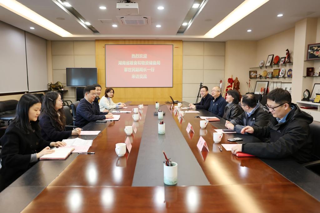 3月24日,湖南省粮食和物资储备局党组成员、副局长覃世民一行来bat365在线官方网站调研交流。食品学院院长孙秀兰,副院长程力等参与座谈。