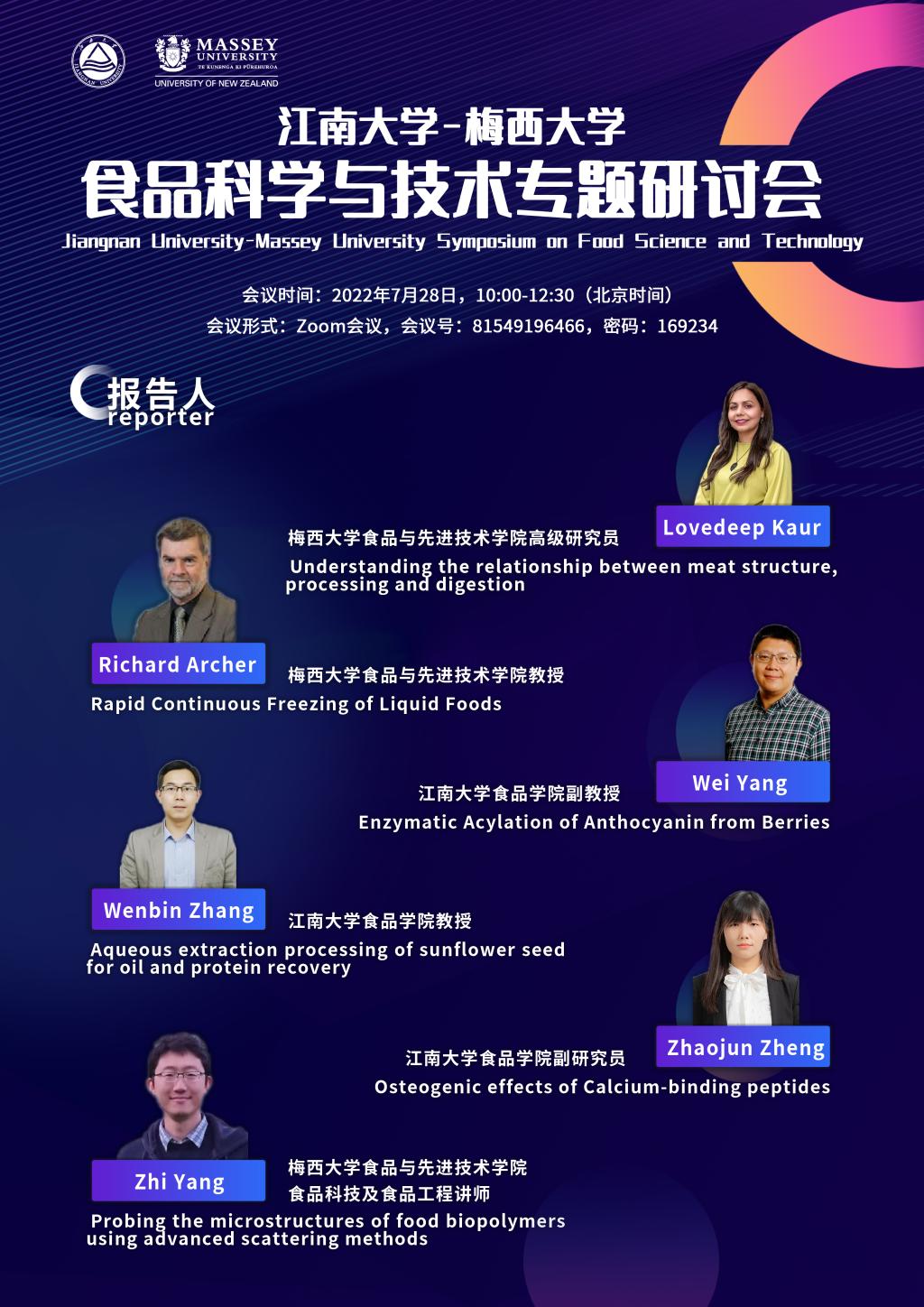 研讨会主题:江南大学-梅西大学食品科学与技术专题研讨会