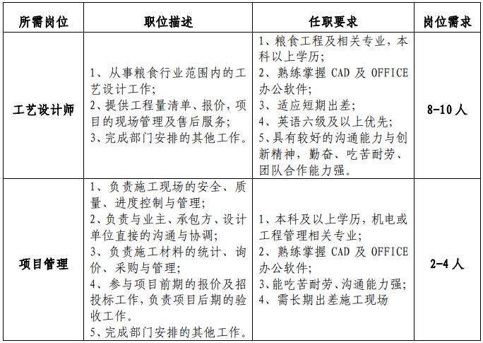 技术人员专业结构涵盖粮食加工、油脂加工、物流技术、储藏技术、食品科学、化工、生物技术、机械、电气及自动化控制、检测技术、建筑学等,具有多学科综合优势,形成产品、工艺、设备、设施、资源综合利用等方面的研发和工程技术服务的系统集成能力。