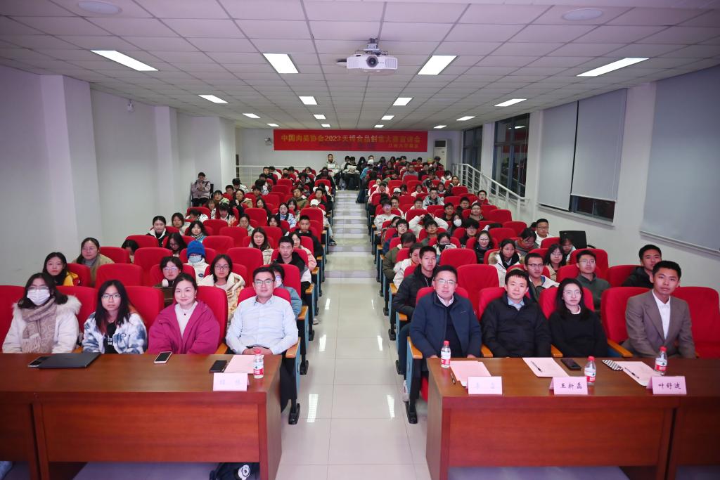 12月12日晚,中国肉类协会2023天博食品创意大赛宣讲会在bat365在线官方网站D912报告厅顺利举办。山东天博食品配料有限公司校企合作负责人程林,食品学院党委副书记、副院长李雷,竞赛辅导员王新磊,竞赛秘书叶舒迪及200余名学生参与活动。